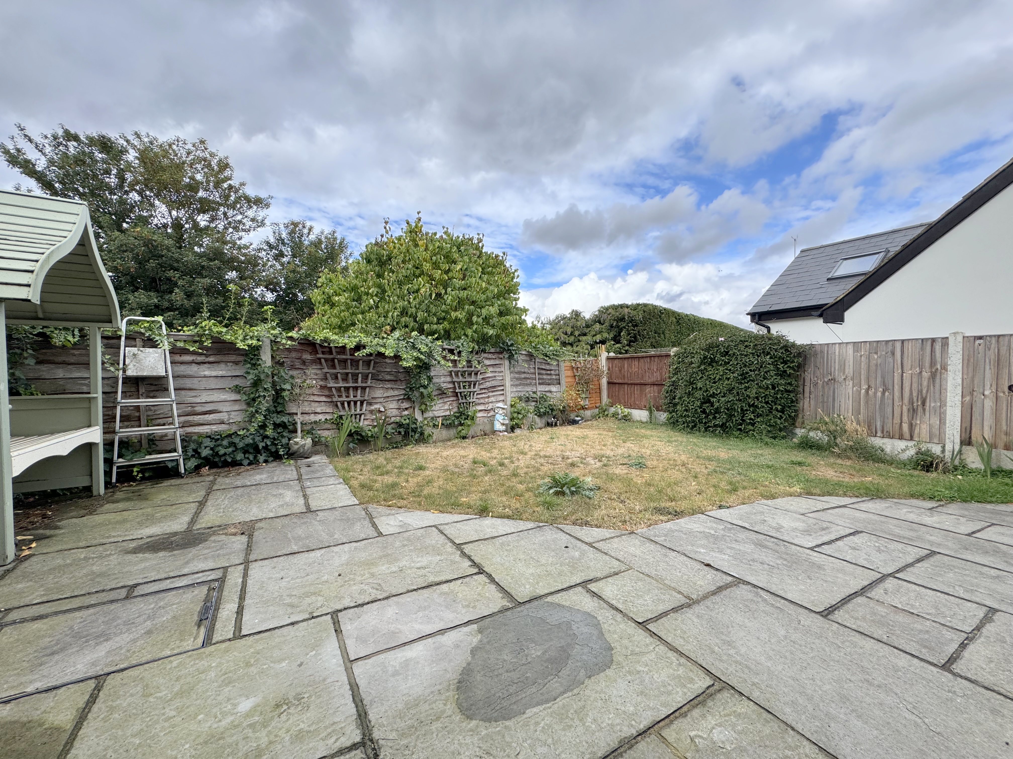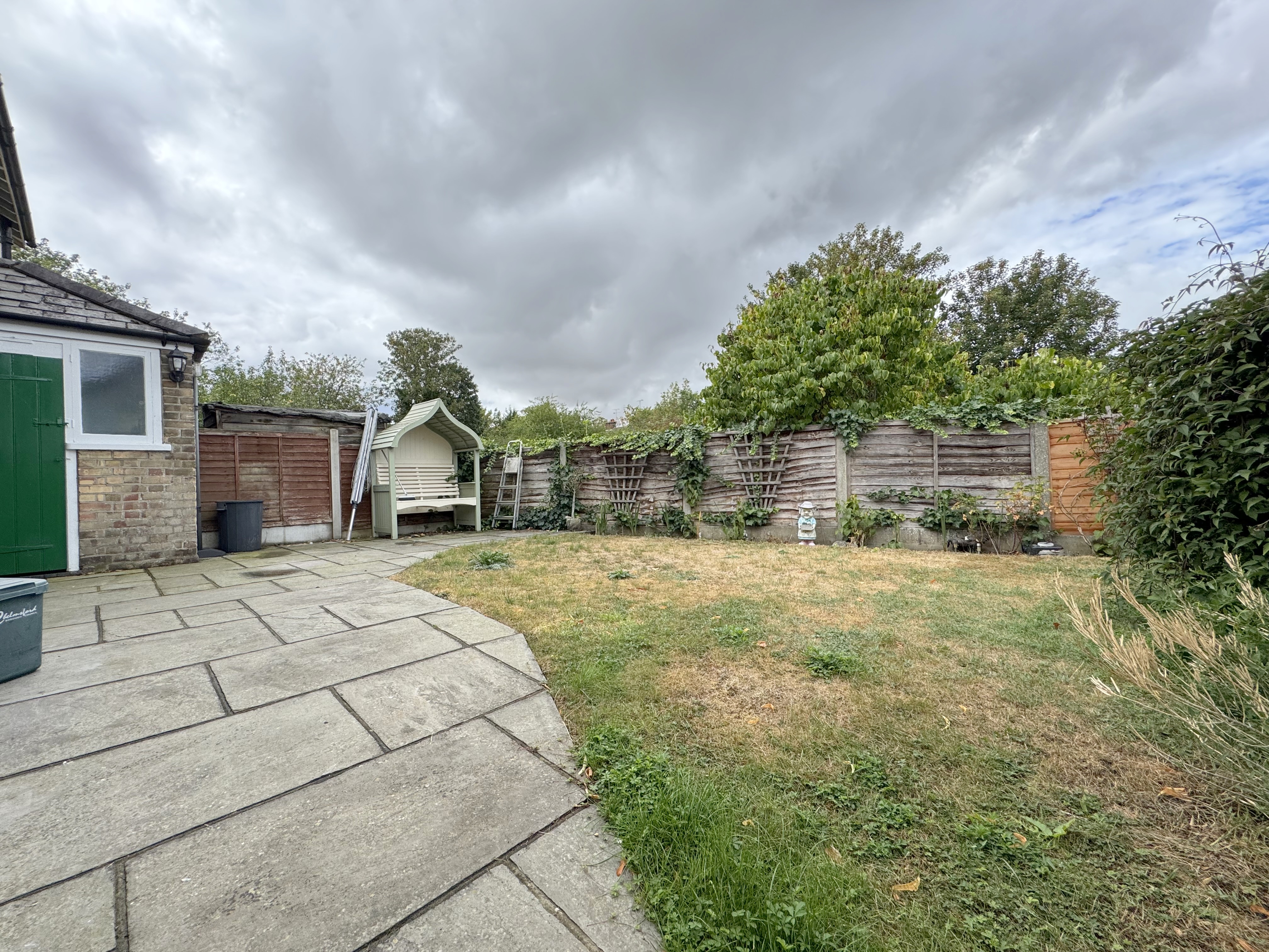 Outside, the garden is a great size yet easy to maintain, with a mix of patio and lawned areas, ideal for relaxing or entertaining. The property also benefits from side access and a useful brick-built outdoor storage cupboard.