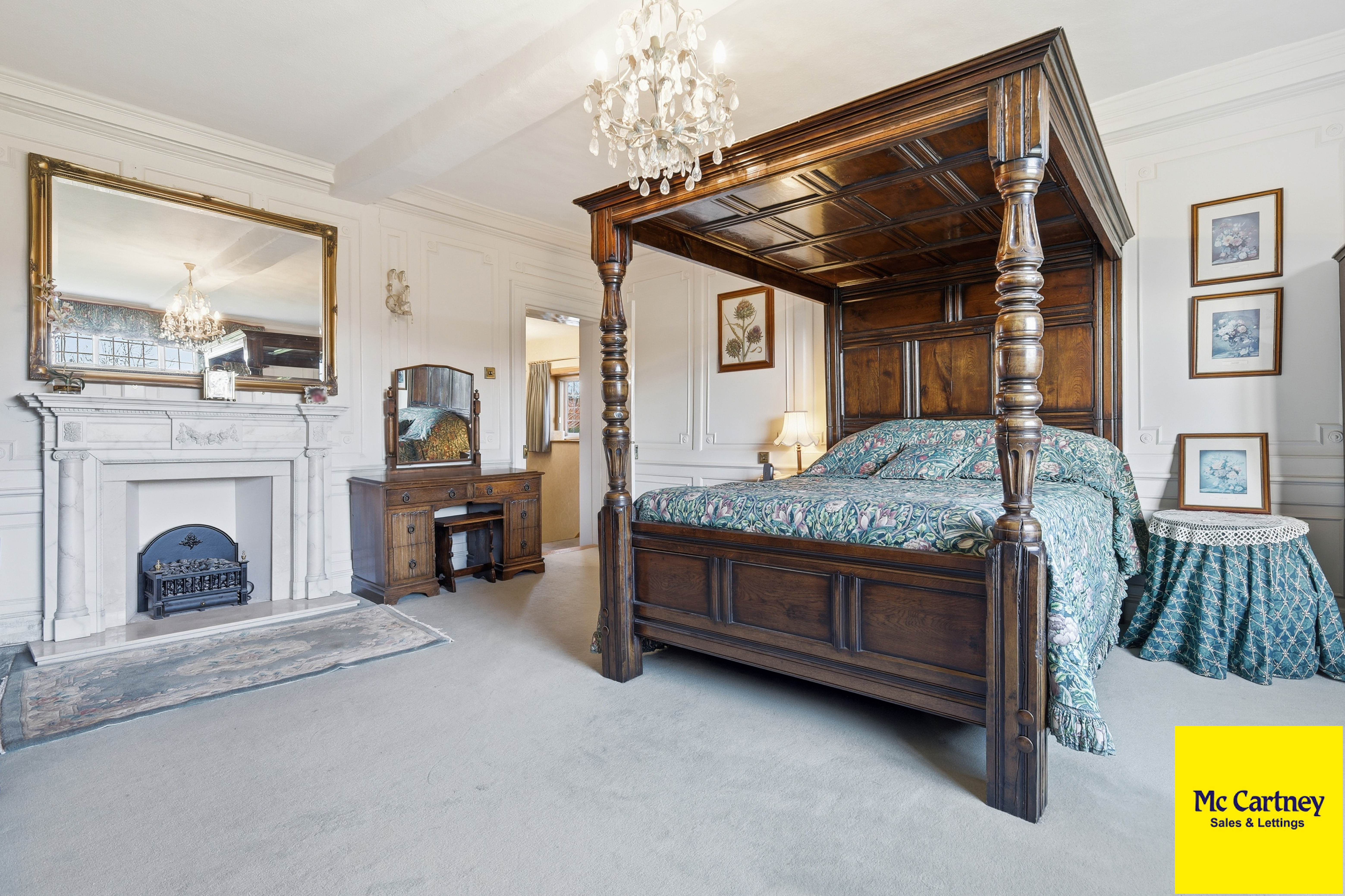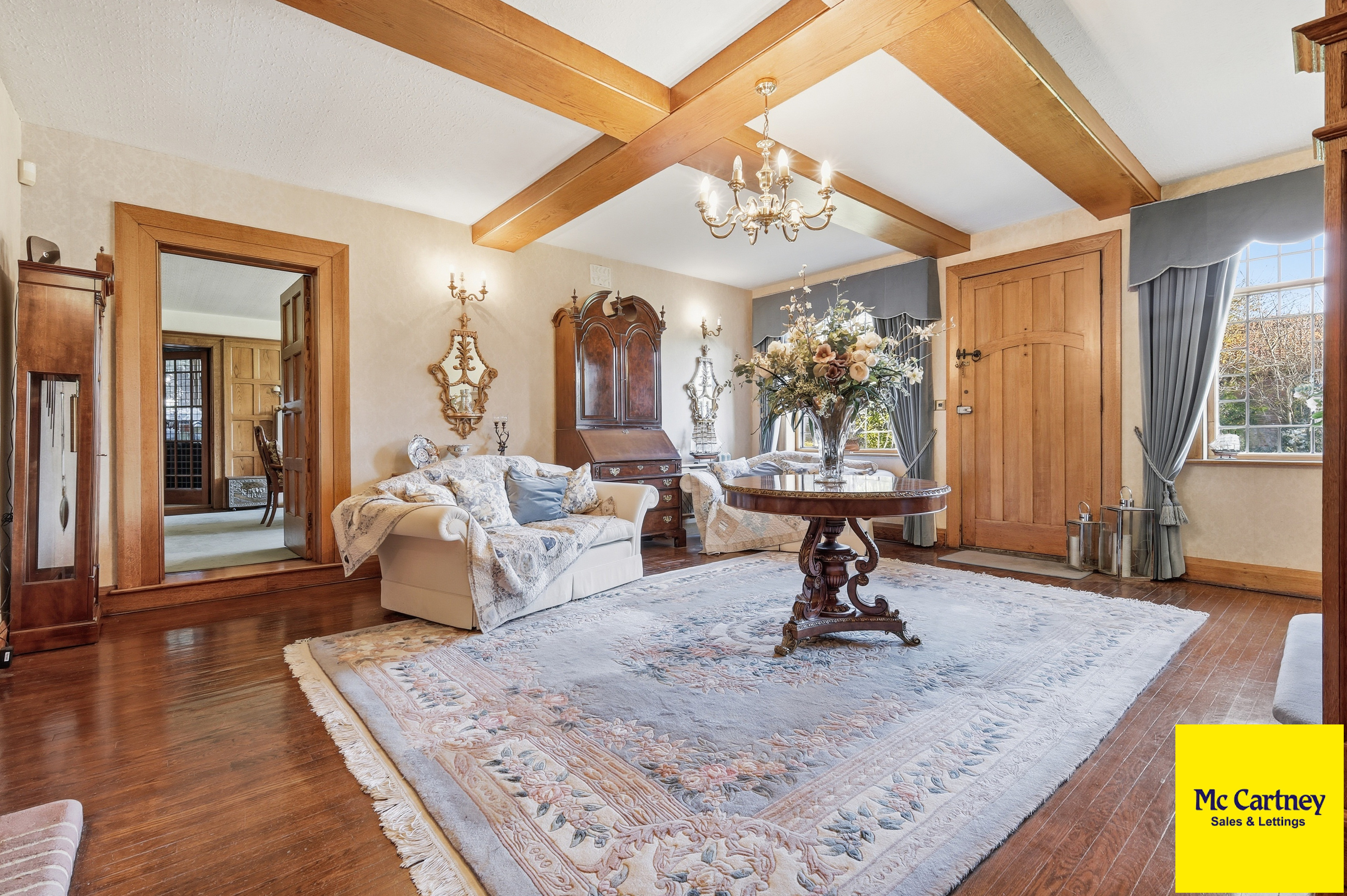 As expected of a house of this age and stature, Dukes Manor retains a wealth of original period features, including hand-tooled cornicing, decorative panelling, traditional skirting and architraves, leaded light windows with shutters, and several working original fireplaces. Historic features such as a concealed priest’s hole sit comfortably alongside modern amenities, creating a home that is both atmospheric and eminently liveable.