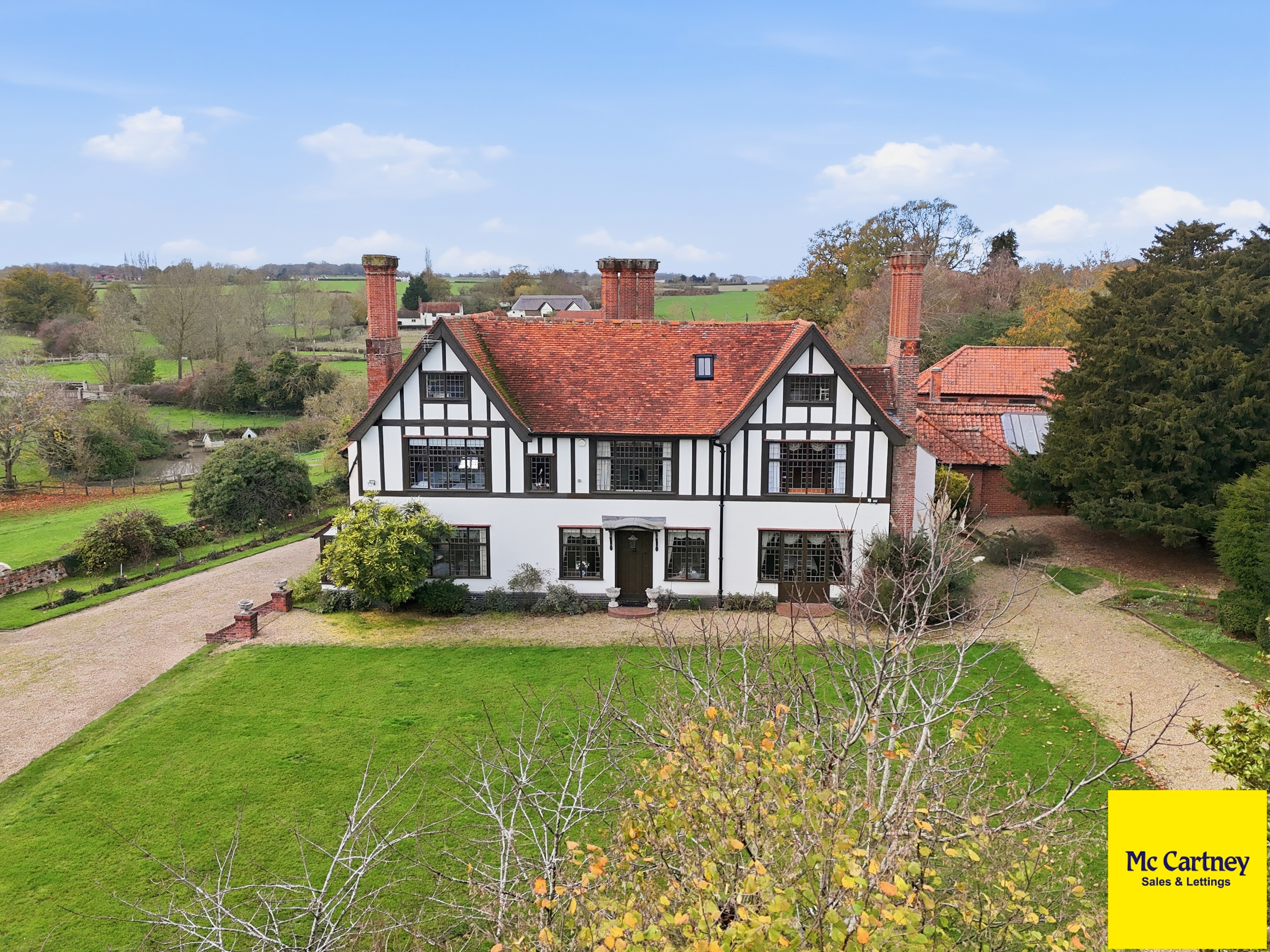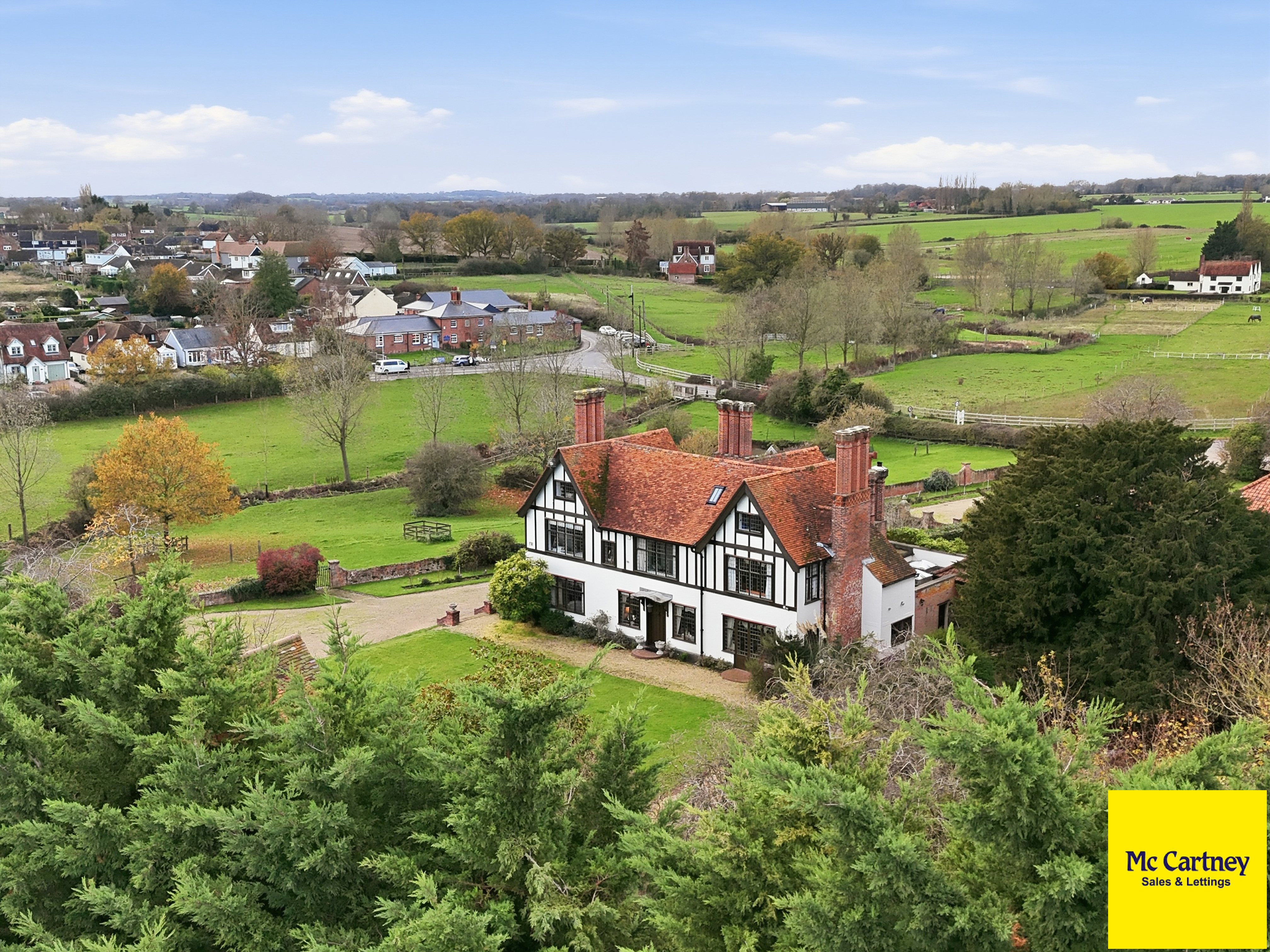 A rare opportunity to acquire an exceptional country home of outstanding historic interest, offering extensive and versatile accommodation set within picturesque surroundings in a highly convenient village location. Steeped in more than nine centuries of heritage, Dukes Manor occupies a commanding elevated position in the heart of the sought-after village of Roxwell, just four miles west of Chelmsford. Recorded in the Domesday Book of 1086 and Grade II listed for its exceptional architectural and historic significance, this remarkable former Elizabethan Baronial Manor House blends Tudor and Restoration-era craftsmanship with carefully considered 21st-century refinement.