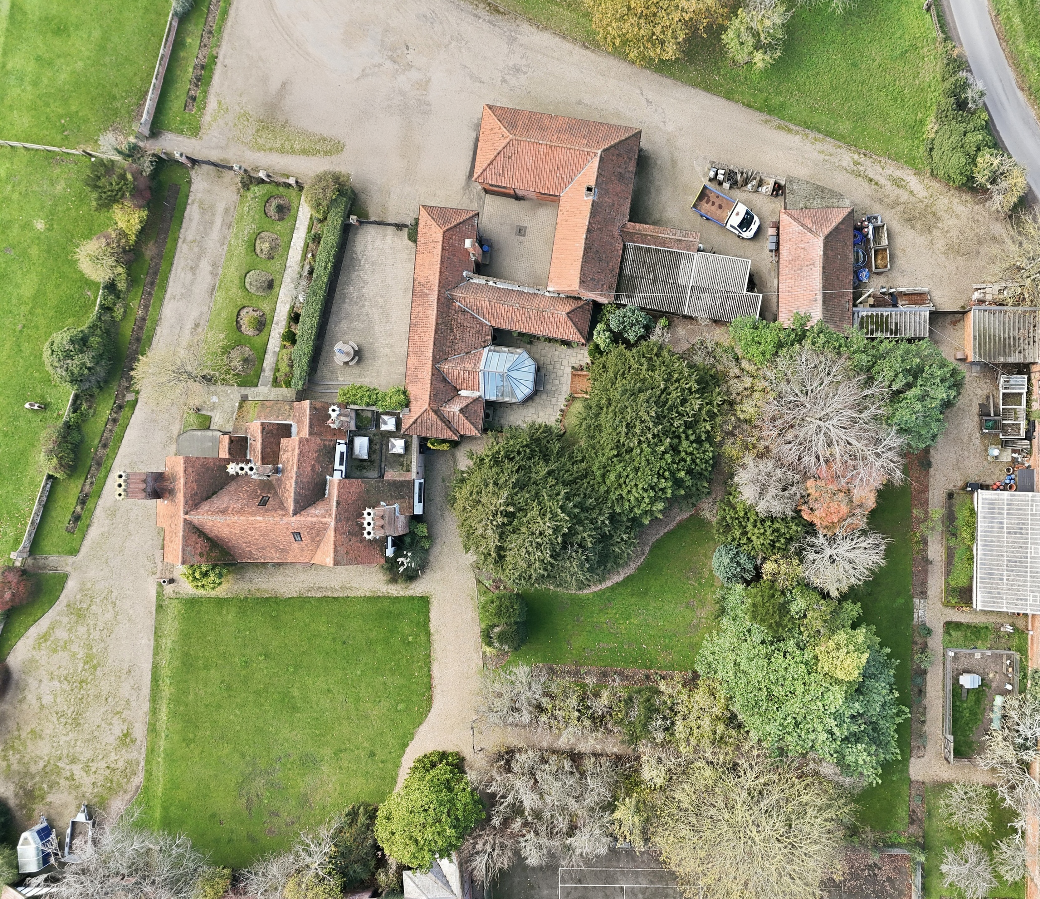 The grounds are a particular feature of the property, providing privacy and a strong sense of arrival. Facilities include a stable courtyard with three loose boxes, paddocks, coach house, workshops, extensive outbuildings and garaging for up to six vehicles, a games room, store rooms, and a large Victorian glasshouse. Leisure amenities include a floodlit tennis court and a swimming pool with pool house, all set within beautifully established gardens and grounds.