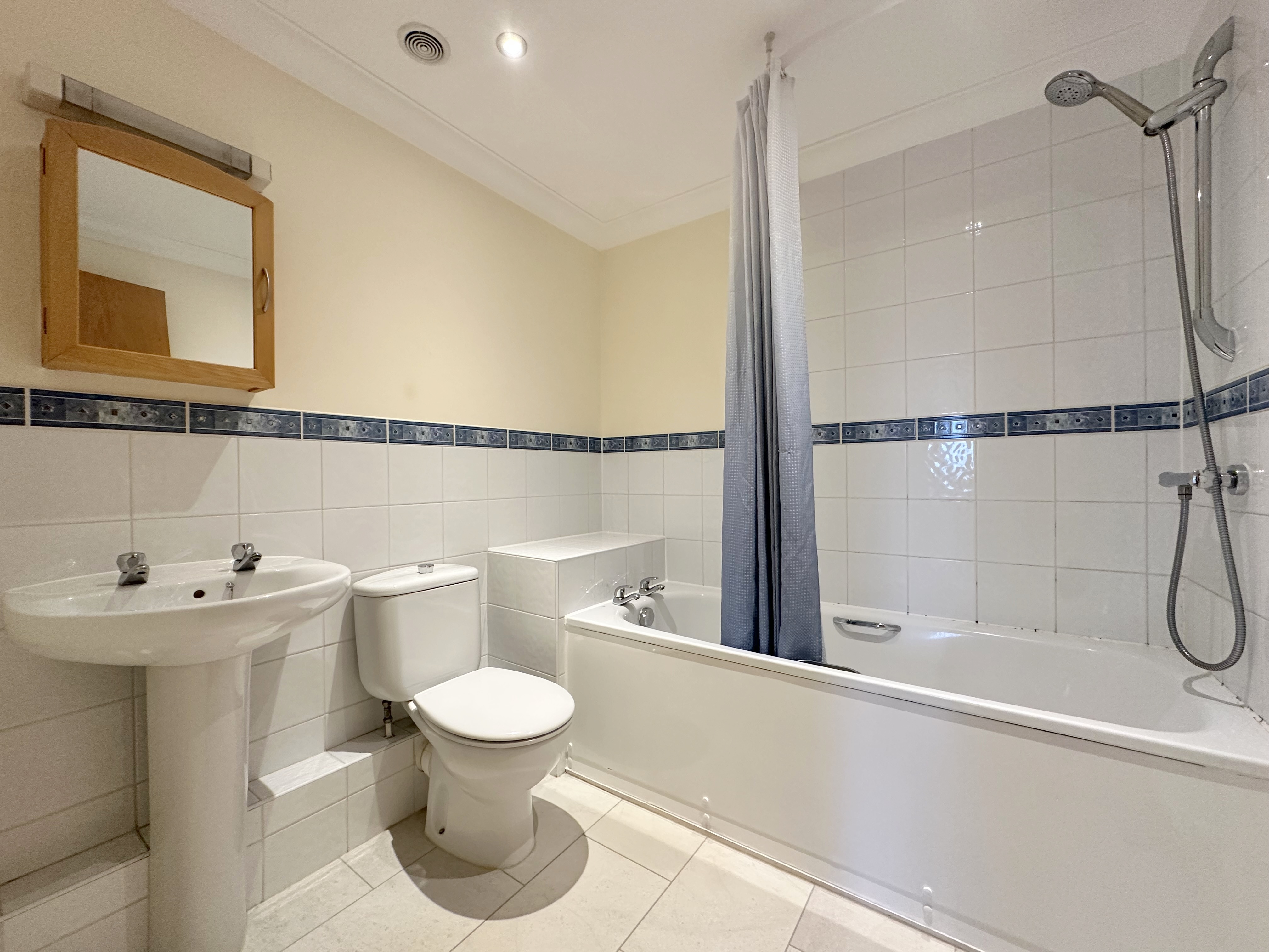 The double bedroom is again exceptionally spacious and benefits from built-in wardrobes, providing excellent storage. The bathroom is fitted with a modern white suite comprising a panelled bath with shower over, pedestal wash hand basin and WC.