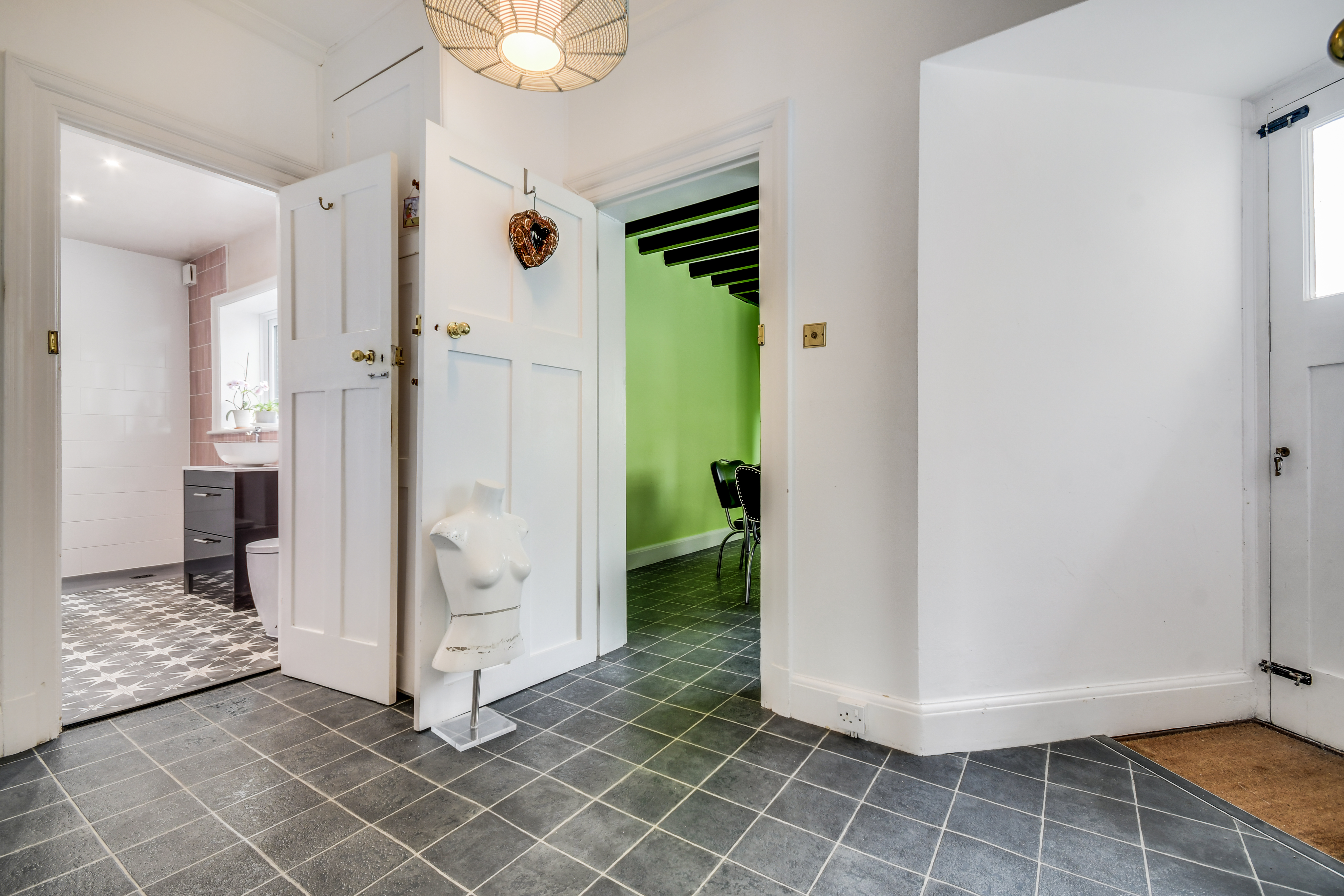 The upper floors provide five well-proportioned bedrooms, including a generous principal suite with en-suite facilities, alongside a family bathroom and additional WC. The second floor offers further flexible space, ideal for guests, older children or home working, complete with useful storage.
